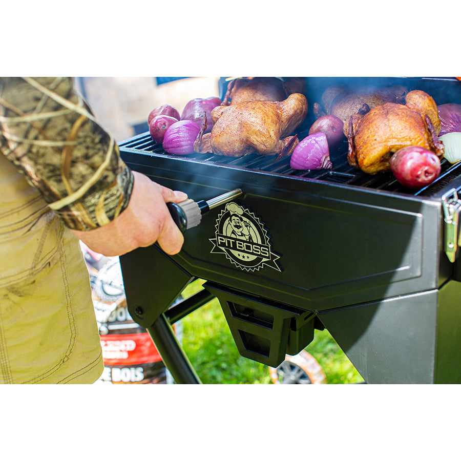 Take competition-worthy grilling on the go with the Pit Boss Competition Series Portable Wood Pellet Grill. The Pit Boss 260PSP2 packs 397 square inches of cooking area into a lightweight, portable grill so you can easily take it along for any adventure. It comes equipped with dial-in digital control that includes indication icons and a prime button to jump start the new unit for a Bigger, Hotter, Heavier® outdoor cooking experience. This grill also includes the flame broiler slide plate with external control lever to allow for direct and indirect flame searing.