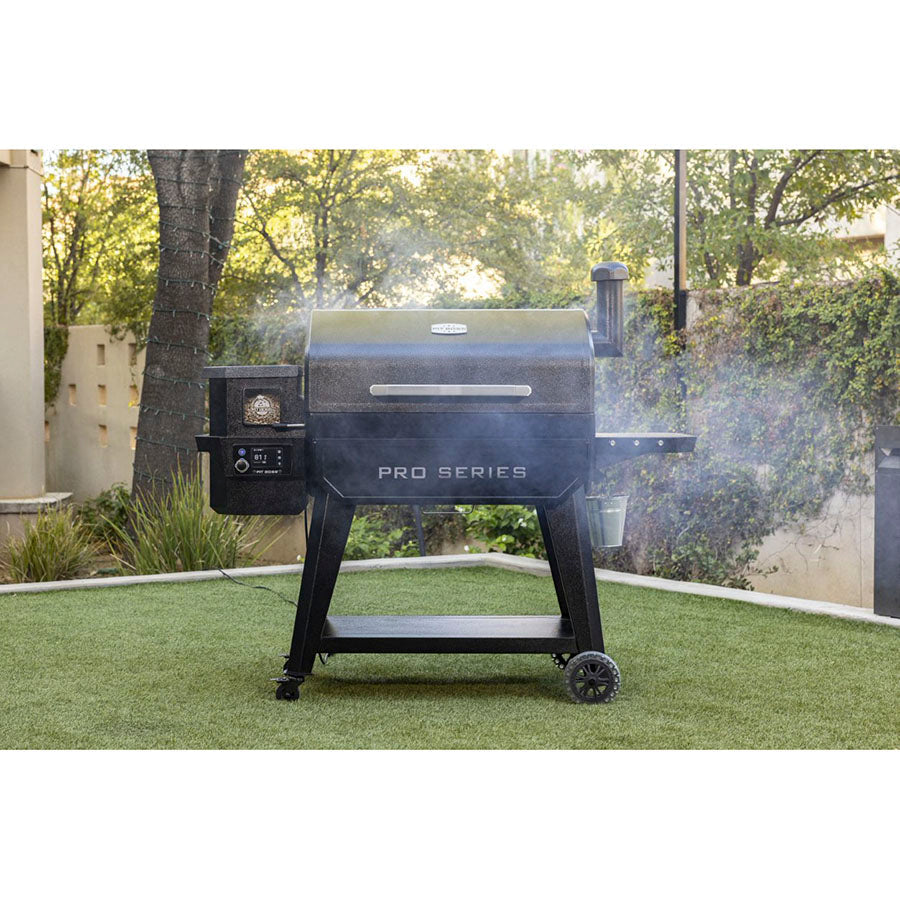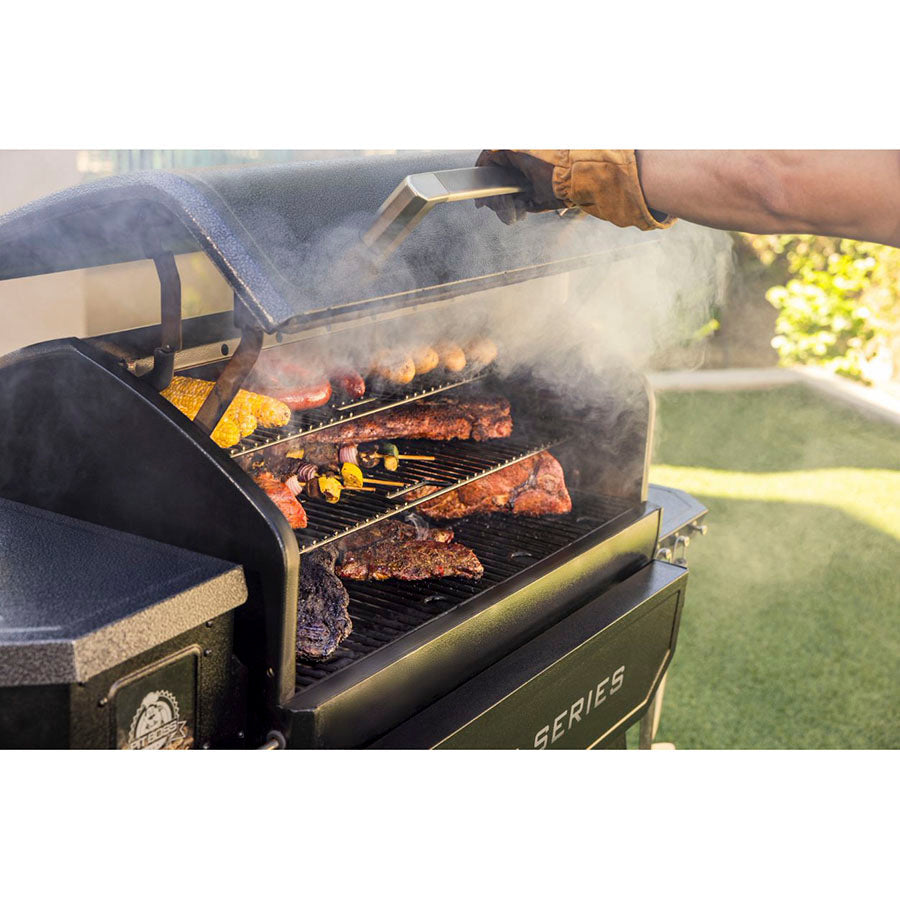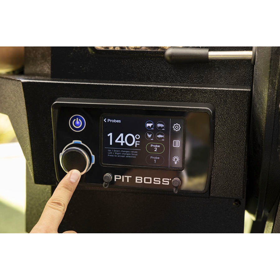 Get grilling done right with the next generation of Pit Boss® Pro Series grills. Featuring an all-new 4.3-inch LCD full color digital touchscreen controller, the Pit Boss Pro Series 1600 Wood Pellet Grill is outfitted with Wi-Fi® and Bluetooth® wireless technology capabilities to maximize your grilling experience. Connect with the Pit Boss Grills app to control temperature settings, monitor your grill’s meat probes and more – all from the convenience of your smart phone. Complete with an all-new rapid igniter, this grill gets cooking faster than ever before. With a 1,598 square inch cooking area, this massive grilling machine is more than qualified to serve a crowd or handle dinner for two.