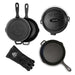 With the Pit Boss® 6 Piece Cast Iron Starter Set you can take all your favorite meals from the kitchen to the grill or wherever the great outdoors takes you. This set includes a 10” long handled skillet, a 12” deep skillet with lid, a 10” camp oven with lid, and heavy-duty leather cooking gloves.